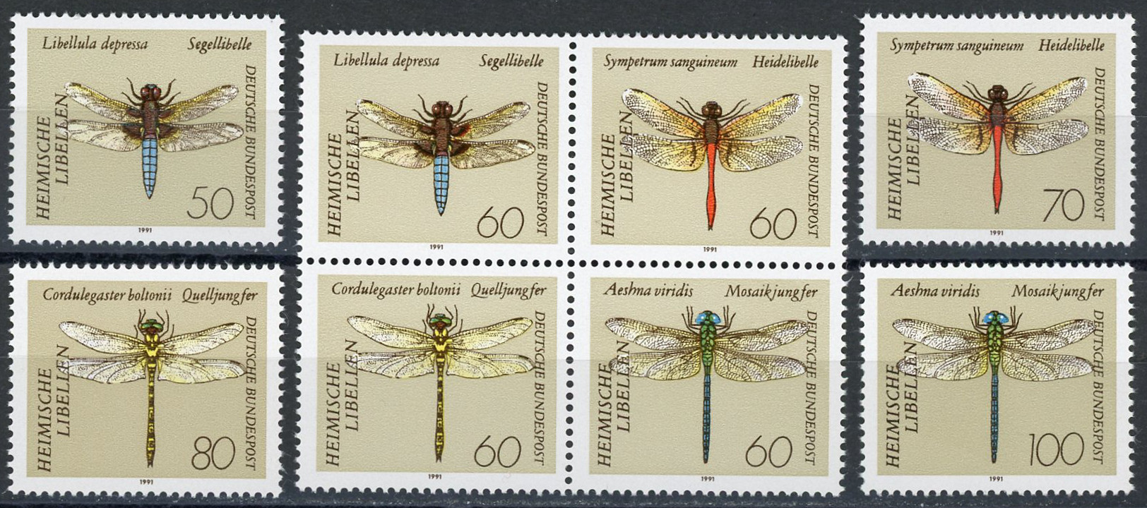 Libellen kpl. 8 Werte, dabei 4 im 4er-Block-Zdr