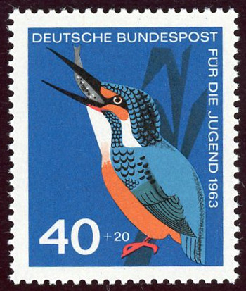 Eisvogel mit Plattenfehler ?: versch. blaue Punkte im oberen Markenrand Feld ?... mehr