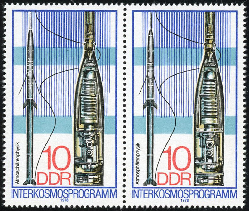 Meteorologische Rakete im Paar, linke Marke mit PlF nach Michel : heller Fleck am rechten mittleren Rand der Rakete