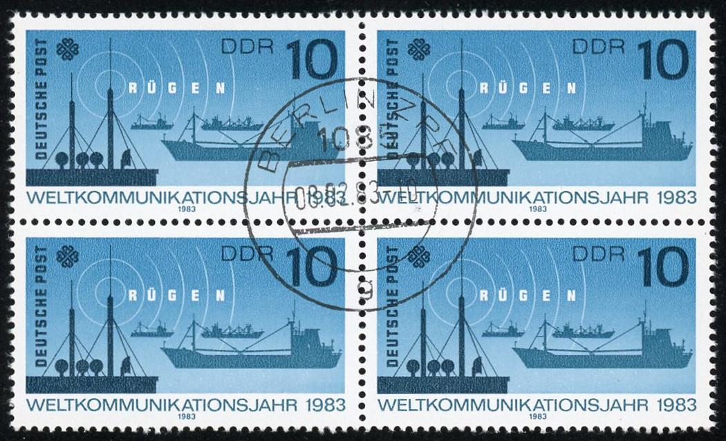 Küstenfunkstelle im Viererblock, rechts oben mit PlF nach Schrage V: oberer Balken des "E" von "WELTKOM..." abgeschrägt