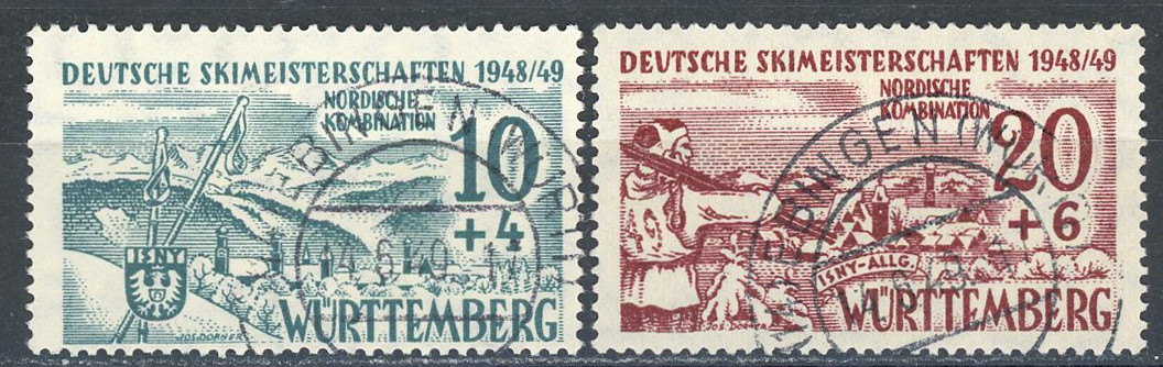 Deutsche Skimeisterschaften (Nordische Kombination) kpl. Ausgabe 2 Werte Rundstempel, einwandfrei... mehr